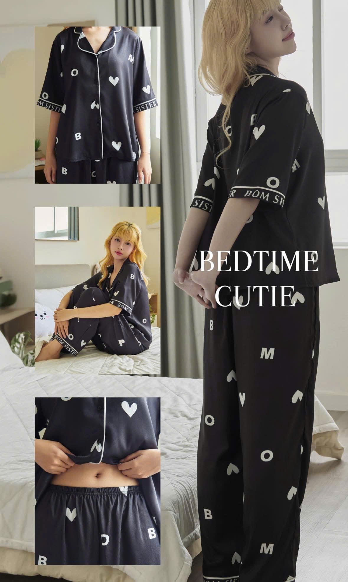 Bộ Đồ Ngủ Nữ Quần Dài Pyjama Lụa Cao Cấp Họa Tiết Trái Tim Dễ Thương BOMSISTER MN2025 LƯU Ý